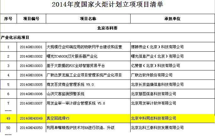 同志科技真空回流焊V3获得2014年度国家火炬计划立项项目