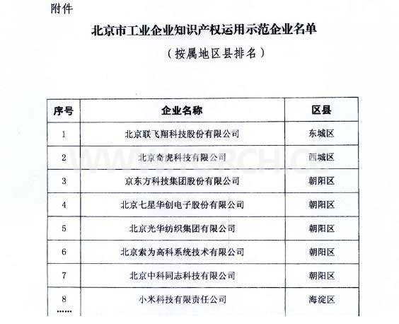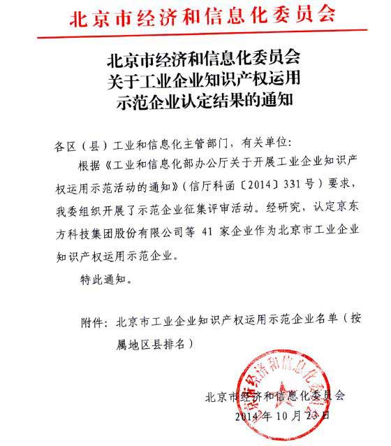 根据《工业和信息化部办公厅关于开展工业企业知识产权运用示范活动的通知》(信厅科函[2014]31号)要求,北京市经济和信息化委员会组织开展了示范企业征集评审活动。经过多轮评审,认定北京41家企业为北京市工业企业知识产权运用示范企业。
