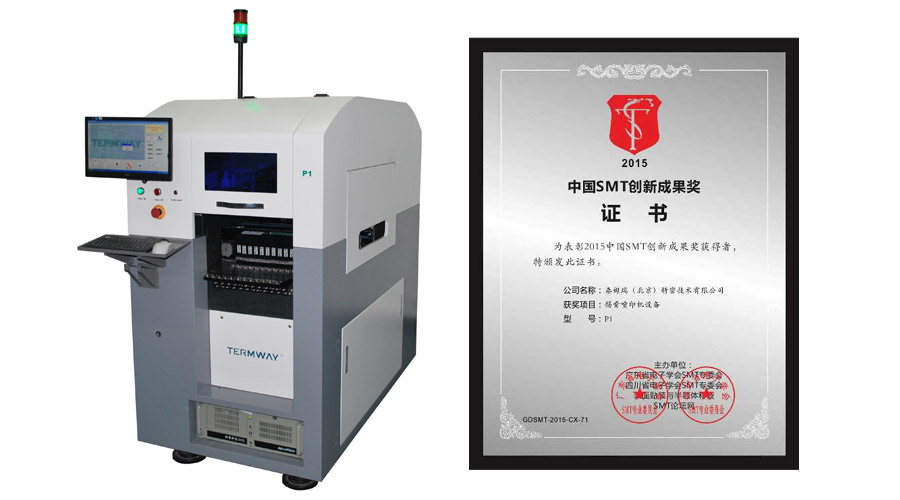 泰姆瑞(北京)精密技术有限公司新研发的国内全自动锡膏喷印机P1,荣获SMT协会颁发的中国SMT创新成果奖。